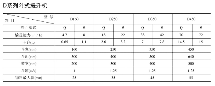 注:1、表申斗容為計算斗容,輸送量按填充系數(shù)0. 6計算得出。