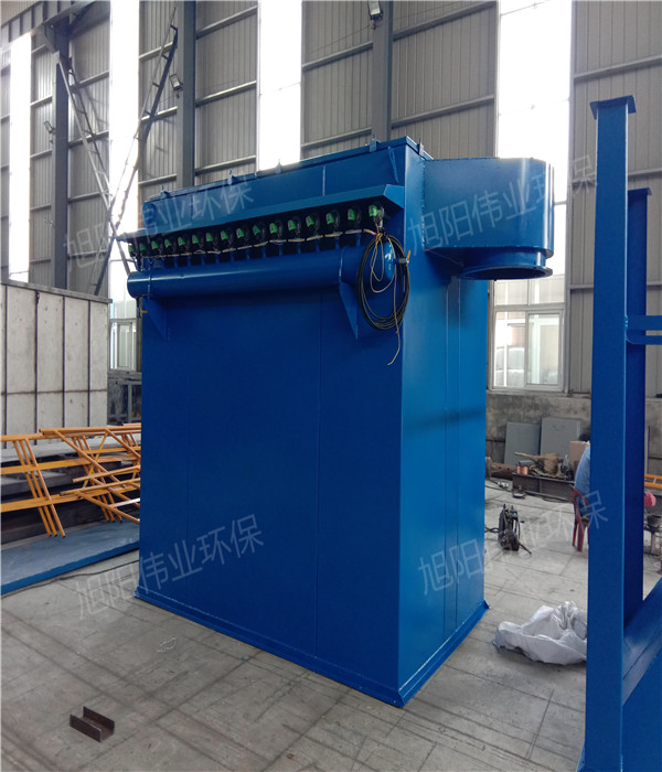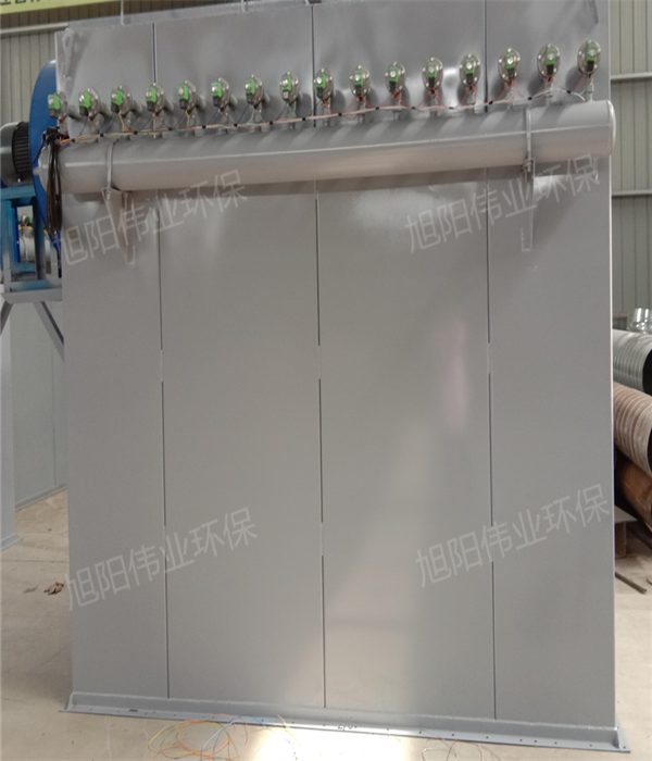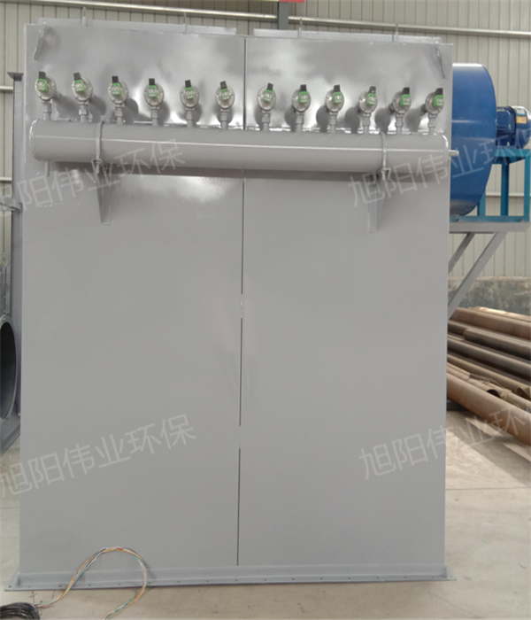 濾袋室,含塵氣體通過除塵器濾袋過濾為凈化氣體進(jìn)入凈氣室,再經(jīng)凈氣室排氣口,由風(fēng)機(jī)排走。粉塵積附在濾 袋的外表面,且不斷增加,使袋除塵器的阻力不斷上升,為使設(shè)備阻力不超過1200Pa,袋除塵器能繼續(xù)工作,需定期濾袋上的粉塵,清灰是由PLC程序 控制器定時(shí)順序起啟動(dòng)脈沖閥,使氣包內(nèi)壓縮空氣(0.5-0.7Mpa)由噴吹管噴出(稱一次風(fēng))通過文氏管誘導(dǎo)數(shù)倍于一次風(fēng)的周圍空氣(稱二次風(fēng))進(jìn)入 濾袋使濾袋在瞬間急速膨脹,并伴隨著氣流的反向作用力抖落粉塵,達(dá)到清灰的目的。
