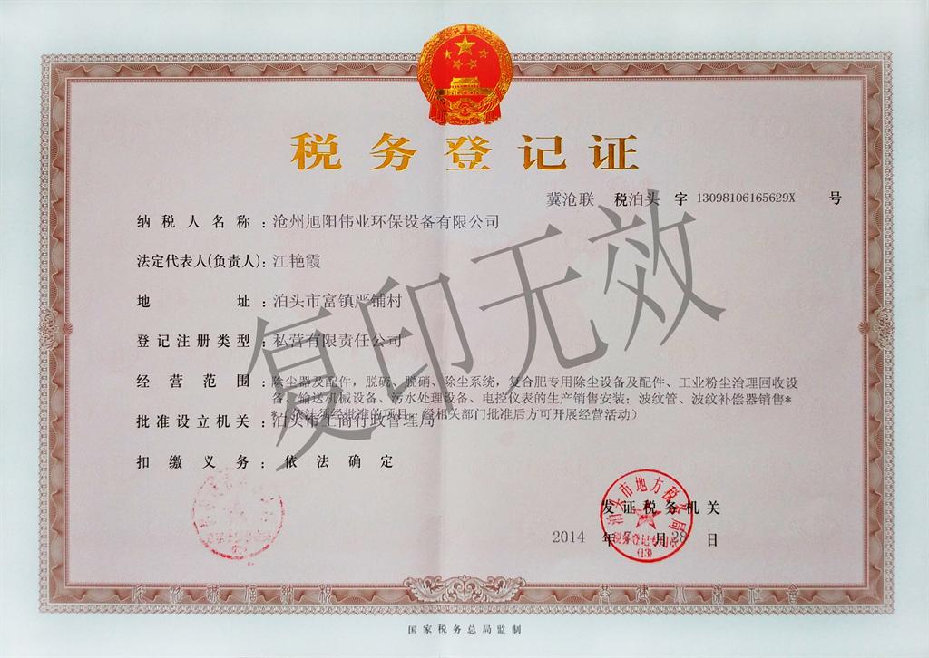 地稅證書-滄州旭陽偉業(yè)環(huán)保設(shè)備有限公司