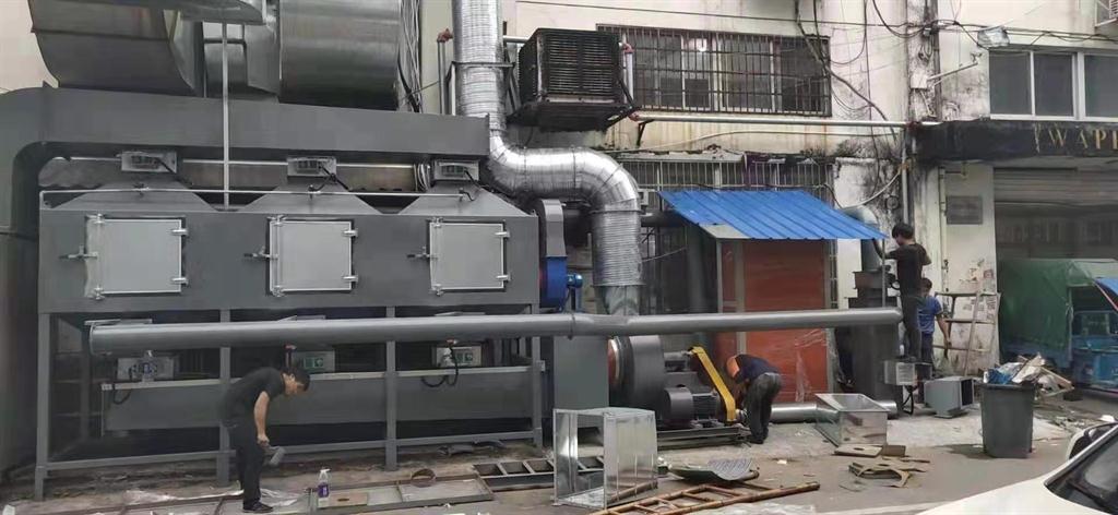 活性炭吸附濃縮催化燃燒(RCO)系統(tǒng)根據(jù)吸附(效率高)和催化燃燒(節(jié)能)兩個(gè)基本原理設(shè)計(jì),采用雙氣路連續(xù)工作,一個(gè)催化燃燒室,兩個(gè)吸附床交替使用。先將有機(jī)廢氣用活性炭吸附,當(dāng)快達(dá)到飽和時(shí)停止吸附,然后用熱氣流將有機(jī)物從活性炭上脫附下來(lái)使活性炭重生;脫附下來(lái)的有機(jī)物已濃縮(濃度較原來(lái)提高幾十倍)并送往催化燃燒室催化燃燒成二氧化碳及水蒸汽排出。當(dāng)有機(jī)廢氣的濃度達(dá)到2000mg/m³以上時(shí),有機(jī)廢氣在催化床可維持自燃,不用外加熱。燃燒后的尾氣一部分排入大氣,大部分被送往吸附床,用于活性炭重生。這樣可滿足燃燒和吸附所需的熱能,達(dá)到節(jié)能的目的。重生后的可進(jìn)入下次吸附;在脫附時(shí),凈化操作可用另一個(gè)吸附床進(jìn)行,既適合于連續(xù)操作,也適合于間續(xù)操作。