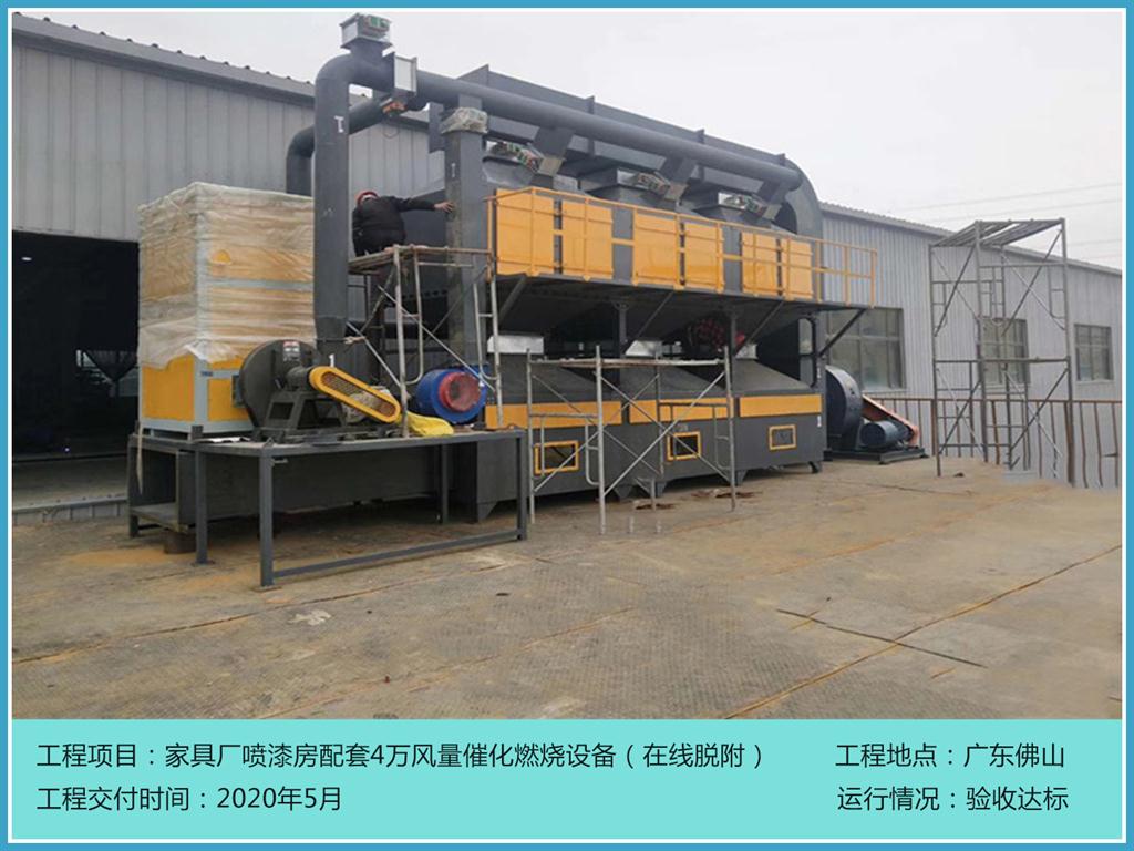 VOC分子吸附其表面,經(jīng)過(guò)活性炭廢氣可直接排放。吸附有大量VOC的活性炭通過(guò)高溫脫附,脫附出來(lái)的有機(jī)廢氣送入后端的廢氣氧化系統(tǒng)熱氧化處理,凈化后的廢氣可直接排放。